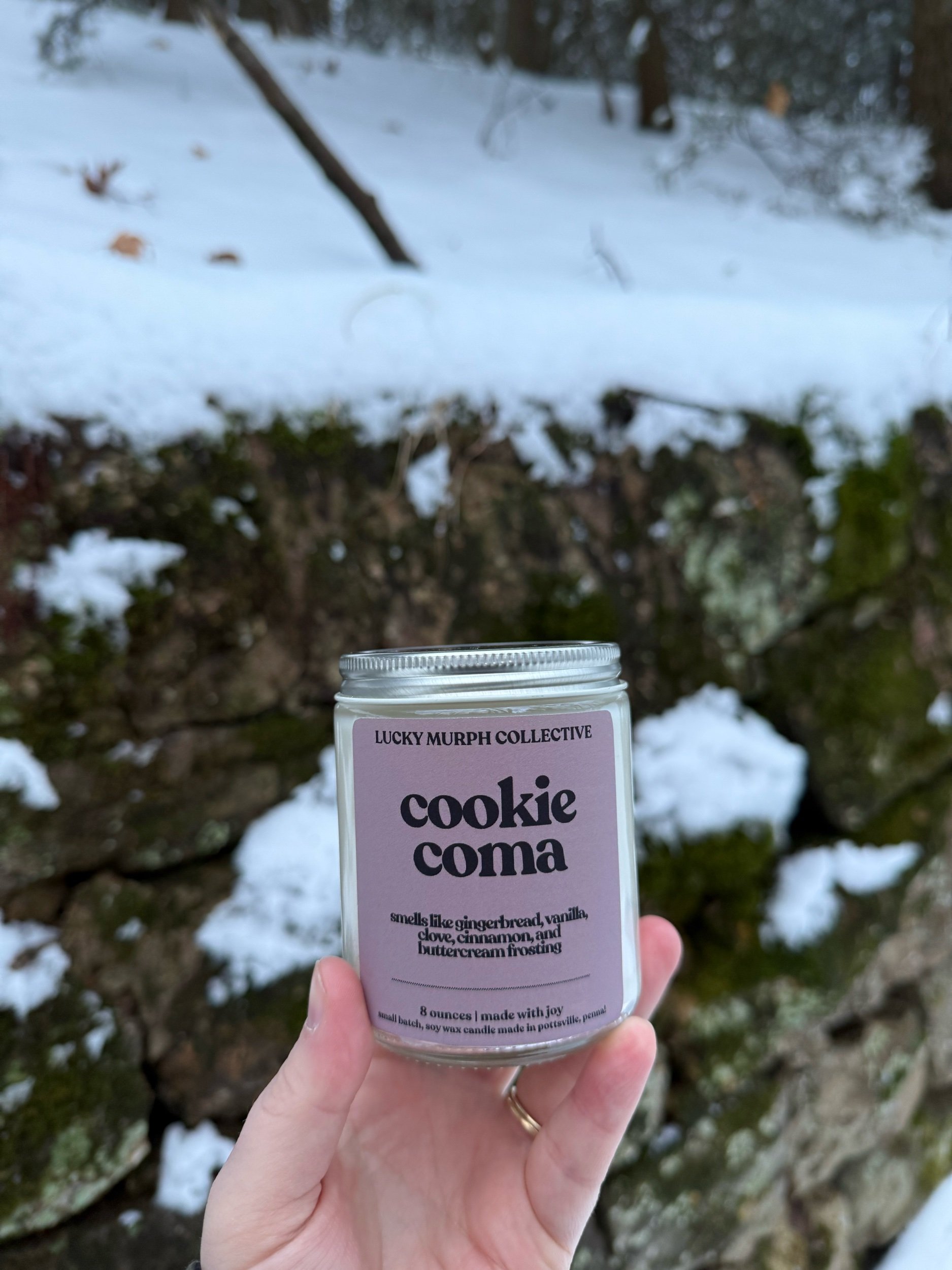 Shop › Cookie Coma Candle Image 1 of 1 Cookie Coma Candle $20.00 Smells like gingerbread, vanilla, clove, cinnamon, and buttercream frosting!8oz / Soy Wax Quantity: Add To Cart Added! Smells like gingerbread, vanilla, clove, cinnamon, and buttercream frosting!8oz / Soy Wax