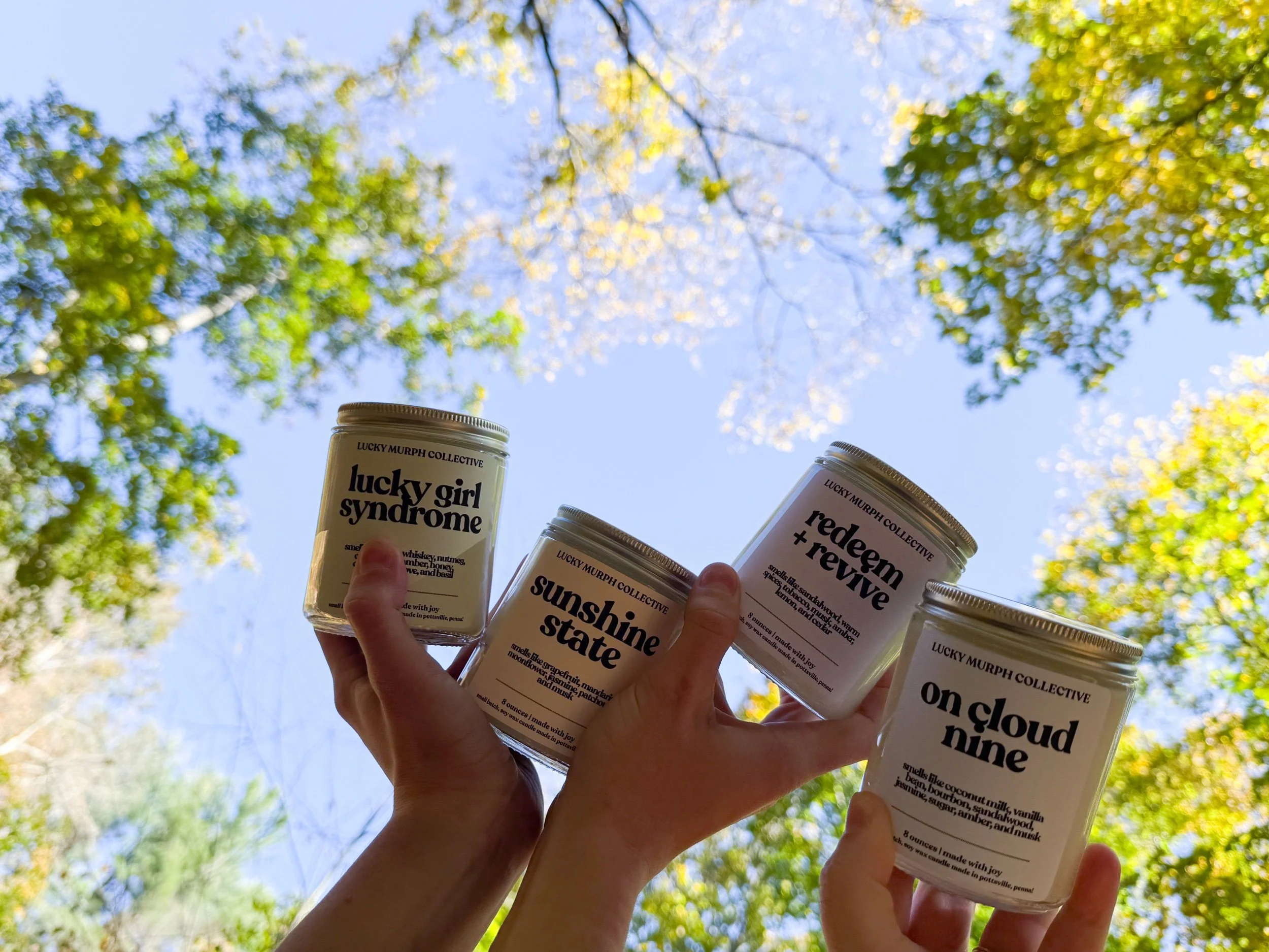 Shop › Lucky Bundle Image 1 of 3 Image 2 of 3 Image 3 of 3 Lucky Bundle $45.00 4 MUST HAVES!!Includes: On Cloud Nine, Lucky Girl Syndrome, Redeem + Revive, and Sunshine State!8 ounces / Soy Wax Quantity: Add To Cart Added! 4 MUST HAVES!!Includes: On Cloud Nine, Lucky Girl Syndrome, Redeem + Revive, and Sunshine State!8 ounces / Soy Wax